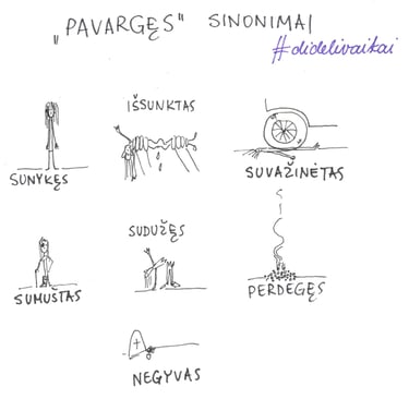 Žaviuosi vaikais, kurie taip meistriškai, taip kūrybiškai naudoja lietuvių kalbą, kai dar tik vyksta tie pirmieji susitikimai su ja. Jie geba sukurti naujadarus tam, kad būtų tikslesni. Jie žaidžia žodžiais ir žongliruoja jais. Jie mėgaujasi ir žavisi tuo, ką jiems pavyksta išlipdyti iš kalbos. Įsitraukime su jais į tą žaidimą, kol tai dar smagu ir smalsu. Pabandykime patys pagalvoti, kiek daug skirtingų sinonimų galime rasti žodžiui "pavargęs" ar "liūdnas", "laimingas" ar "piktas". Mūsų nuotaikas ir nusiteikimus vaikai tikrai jautriau supras, jei vietoje "Aš esu labai pavargęs. Netrukdyk man dabar.", mes pasakysime: "Esu išsunktas kaip citrina. Man reikia laiko, kad iš viso to pasigaminčiau limonadą, kurį vėliau galėsime kartu gerti. Duok man penkiolika minučių tam."